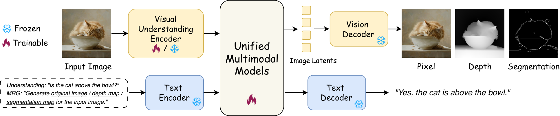 The understanding encoder is updated for UMMs with a shared encoder for generation and understanding; otherwise it is frozen.